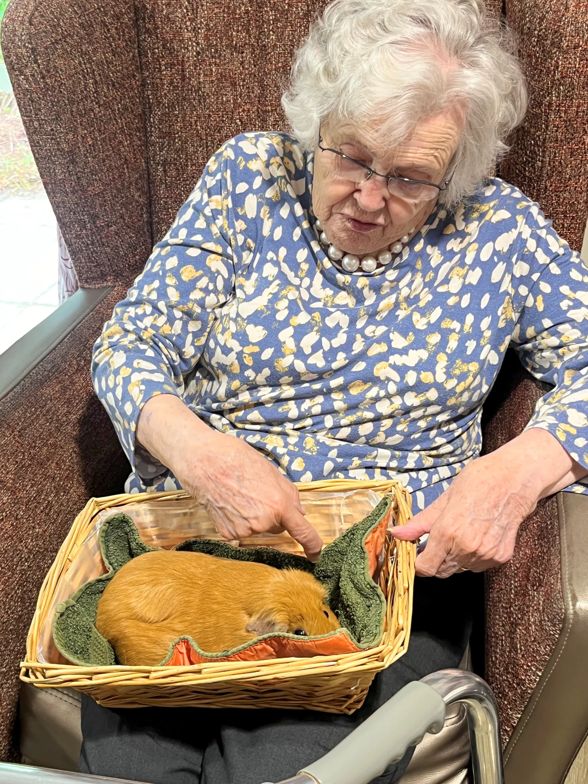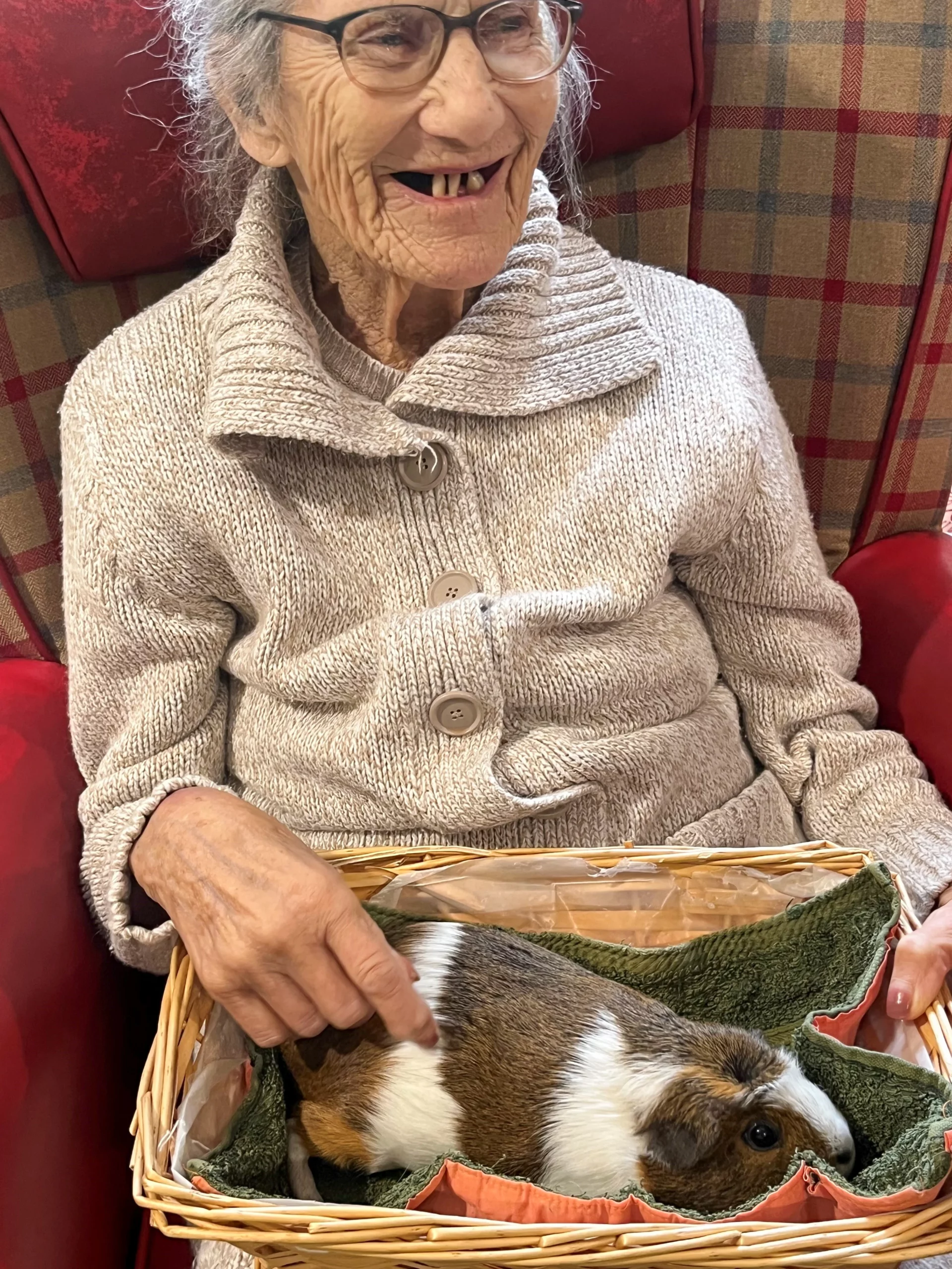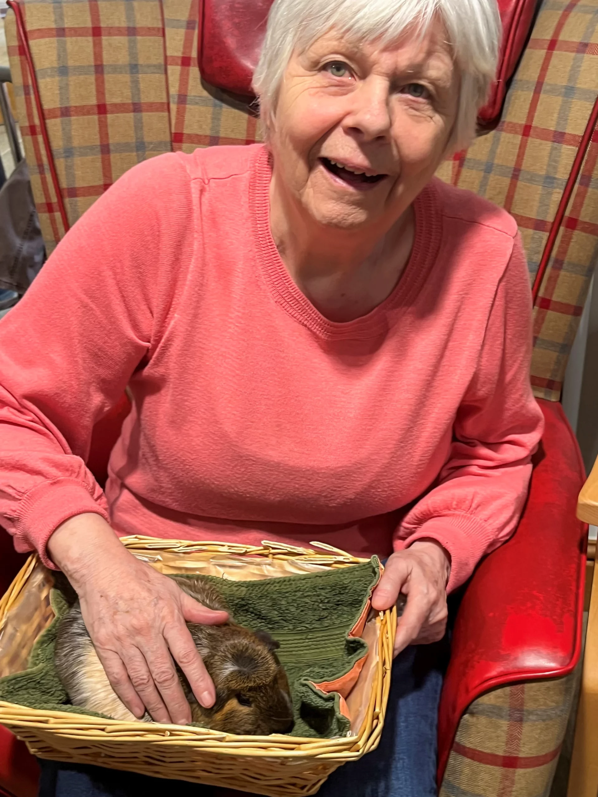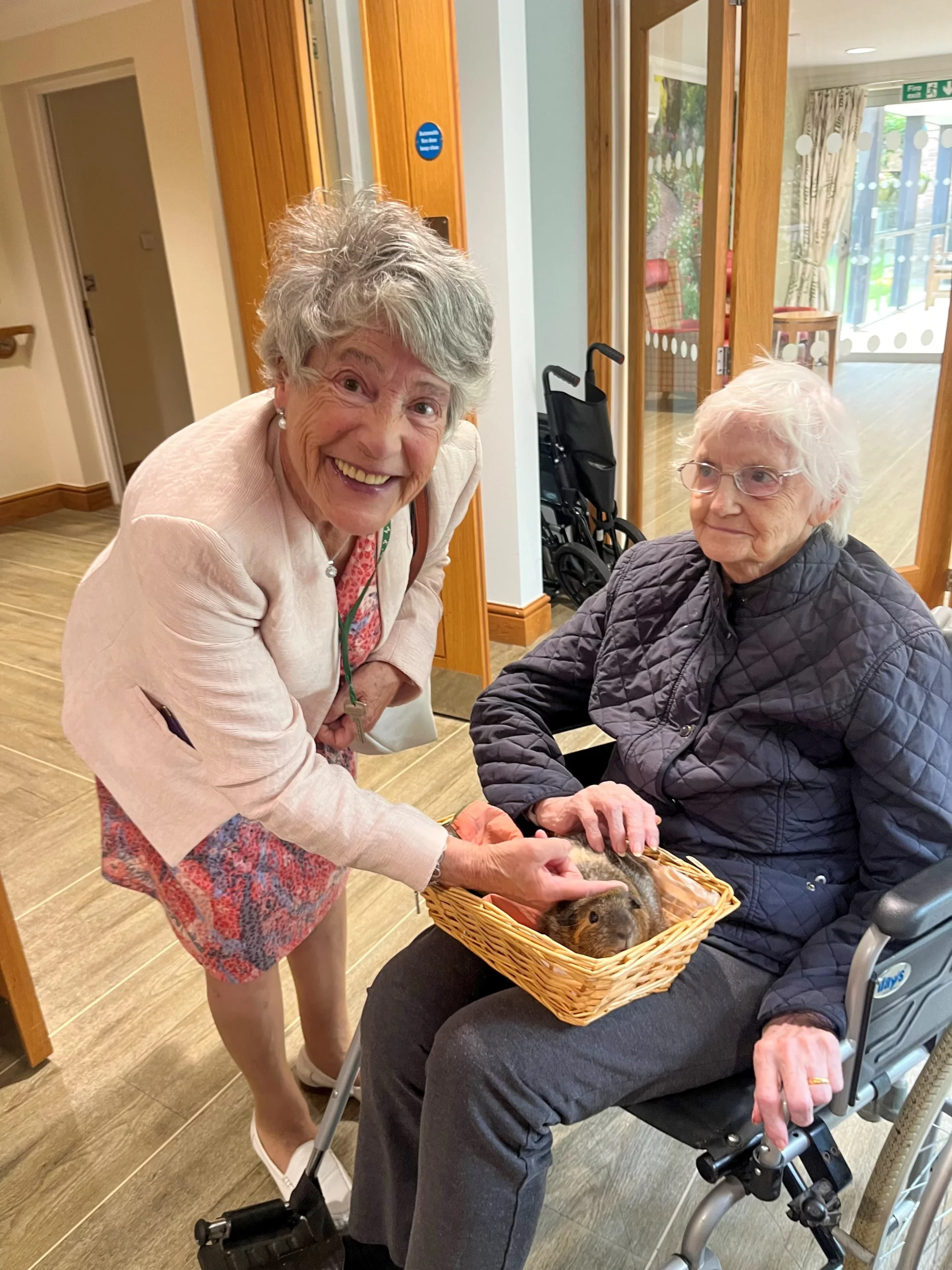 The residents were thrilled by a visit from Pet Pals, who brought along two adorable 4-month-old pigs and some charming guinea pigs. Everyone enjoyed some lovely, calming moments with the animals. There were only a few squeals of excitement. We did remind the residents that they wouldn’t be able to keep the pets permanently.